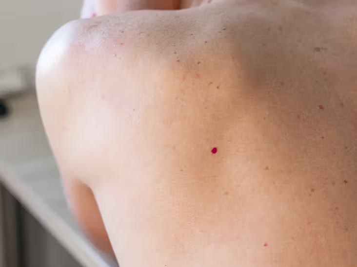 Angiomas are benign growths composed of small blood vessels that can appear on or just beneath the skin. Typically bright red or purple in color, these growths are generally harmless but can become a cosmetic concern if located in visible areas.