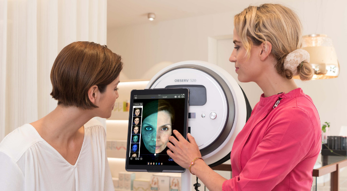 The Observ 520x is a cutting-edge device utilized in skin care clinics to conduct comprehensive skin assessments. It employs advanced technology that incorporates multiple wavelengths of light, including visible and ultraviolet (UV) light, to analyze various aspects of the skin’s health.